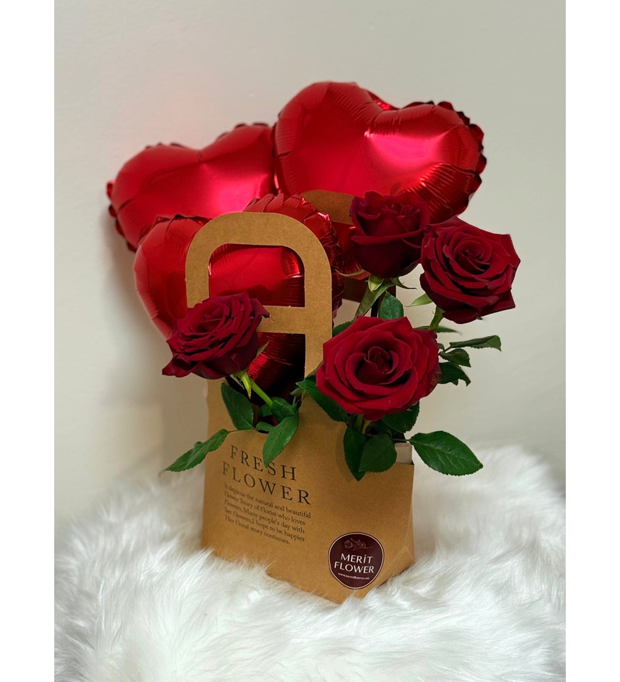 Kırmızı Kalp Balonlar & Kırmızı Güller | Merit Flower