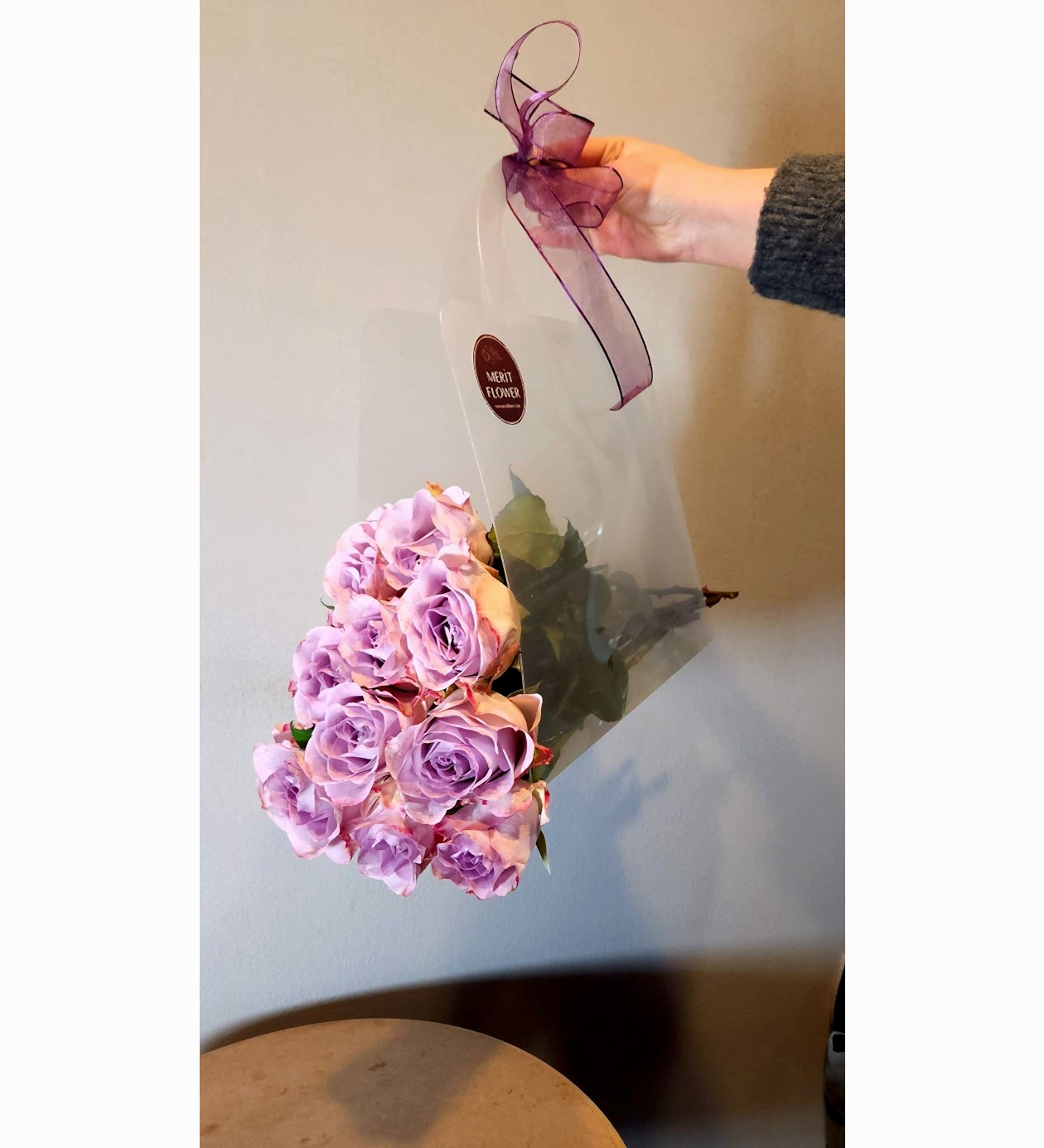 İçerisinde 10 adet ithal lila gül bulunmaktadır.