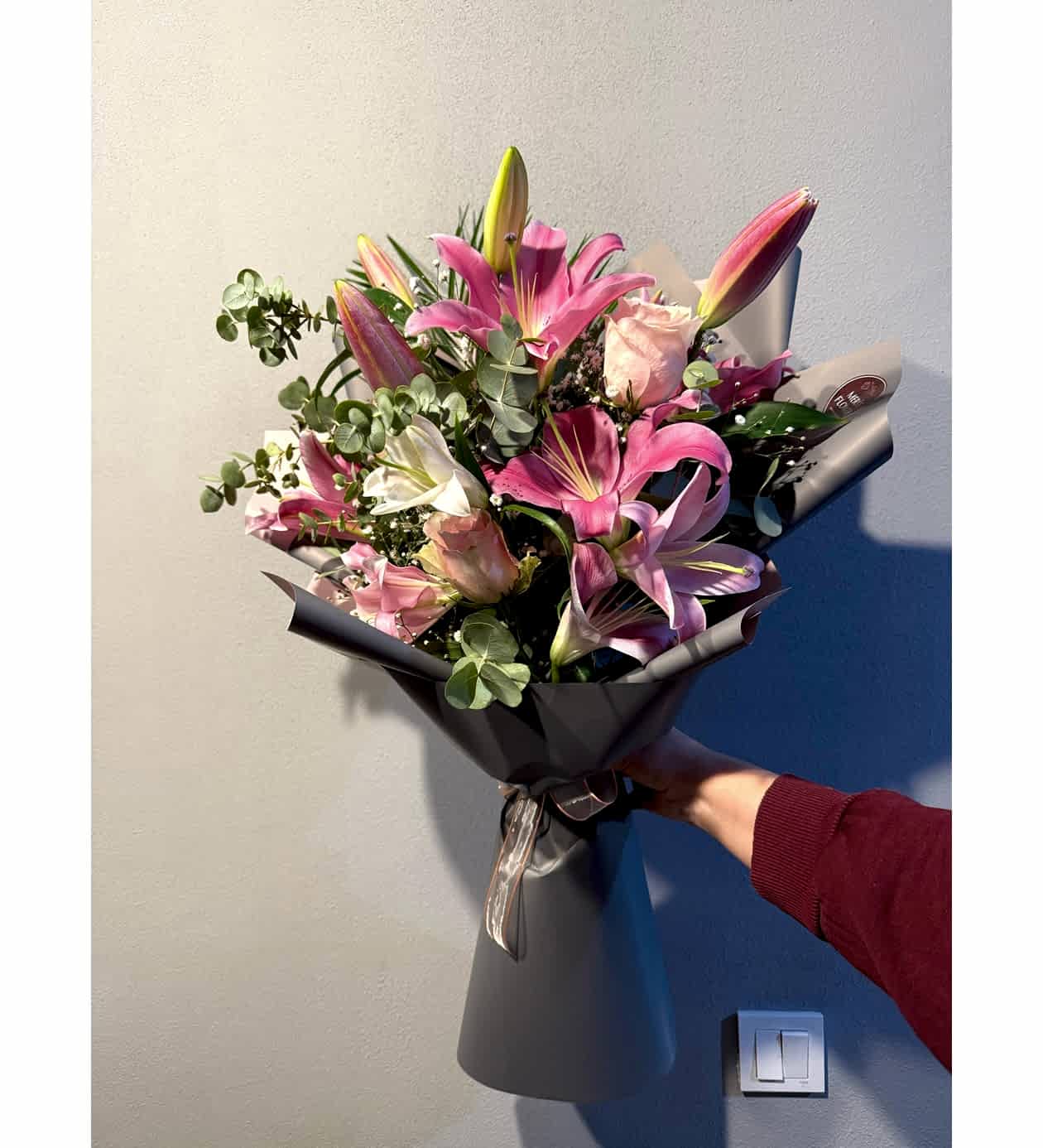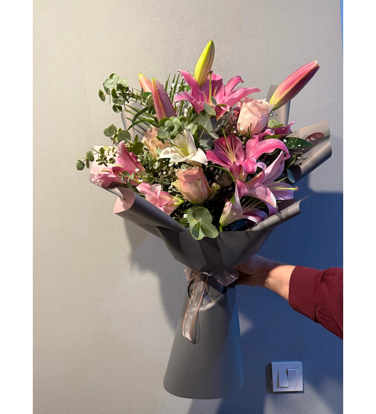 pembe lilyumlar çok taze ve güzel hazırlanmıştı büyüktü buket