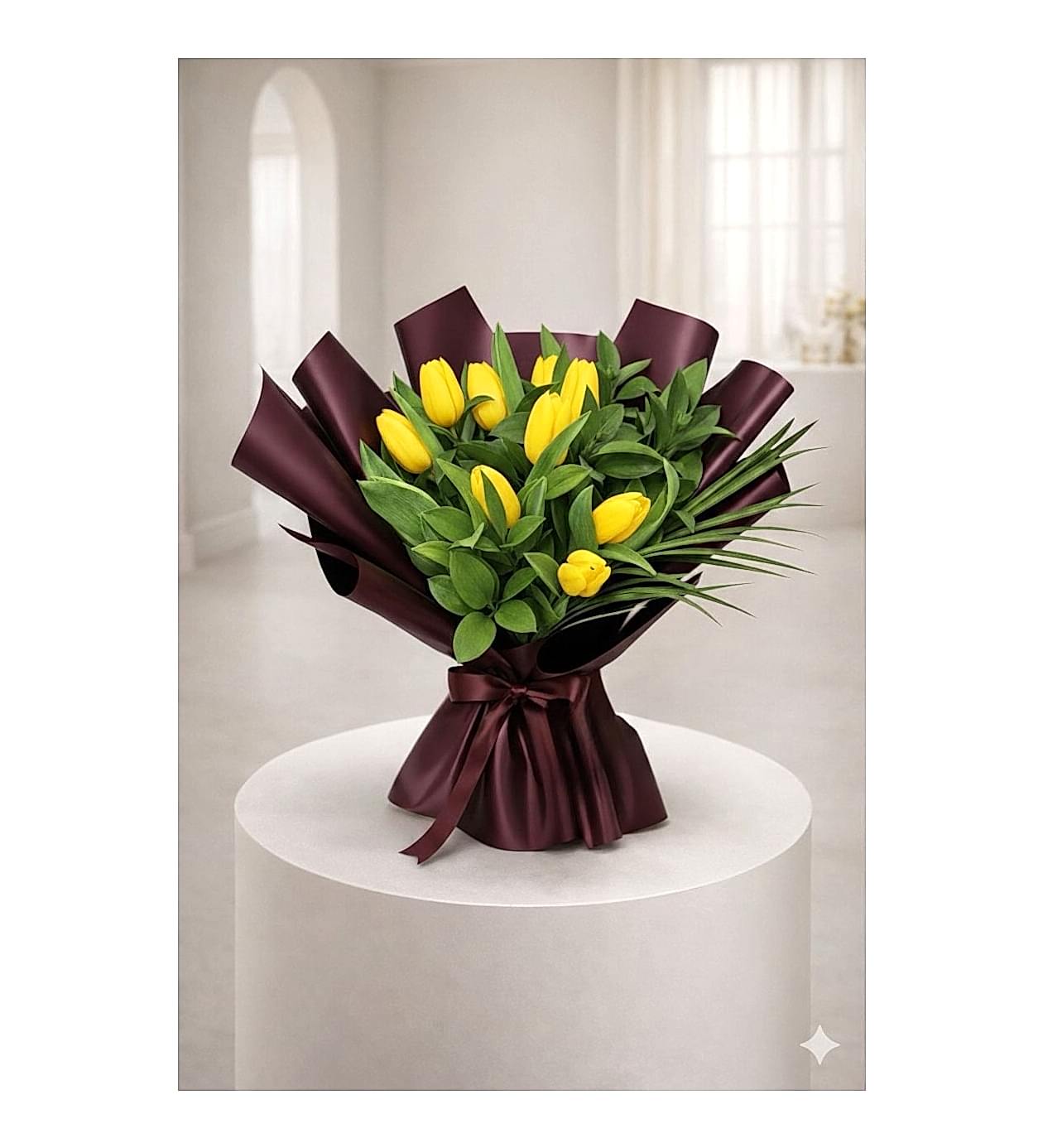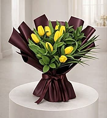İçerisinde 10 adet sarı ithal lale bulunmaktadır.